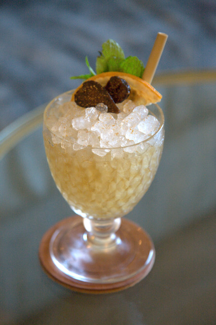 Preparation: Muddle/Whip Shake into a Speedy Goblet with crushed ice. Garnish with fig, dehydrated grapefruit, mint, and grated cinnamon.